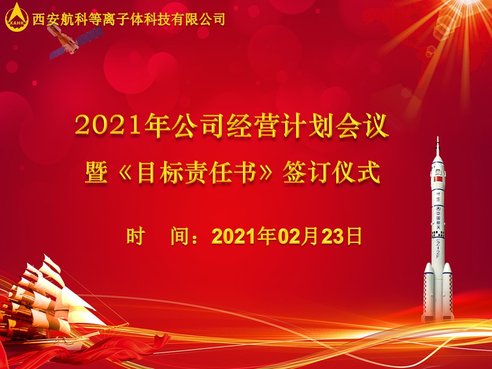 2021227日下午14:30,西安航科等離子體科技有限公司組織全員召開(kāi)2021年公司經(jīng)營(yíng)計劃會(huì )議暨《目標責任書(shū)》簽訂儀式。