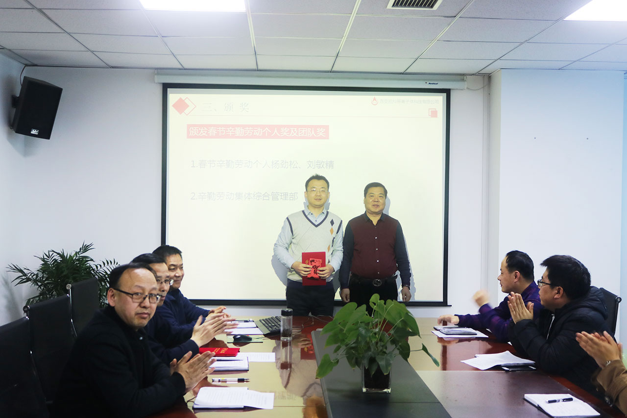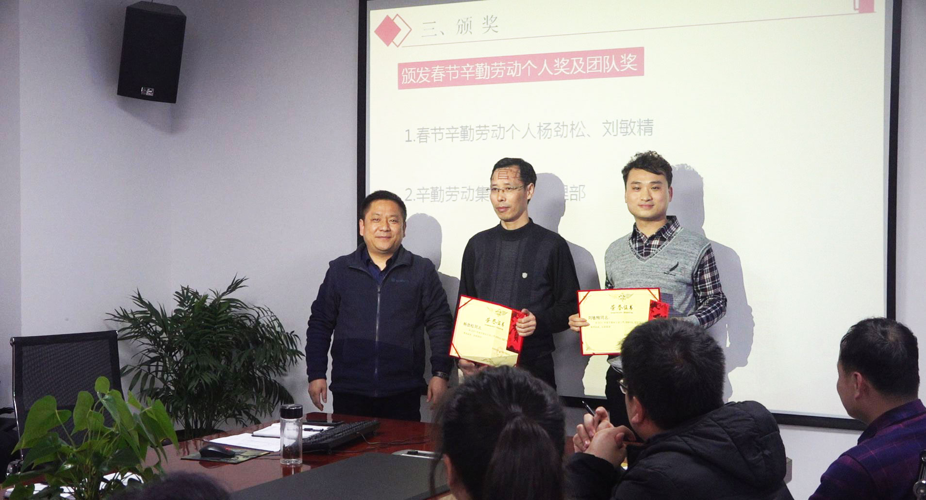 再次,公司對春節期間仍在崗工作和學(xué)習的研發(fā)部04項目總師楊勁松、綜合管理部人資主管劉敏精和辛勤勞動(dòng)集體予以表彰,副總經(jīng)理楊利鋒給個(gè)人頒發(fā)榮譽(yù)證書(shū)和獎金。公司領(lǐng)導對綜合管理部予以表彰,表?yè)P綜合管理部一直兢兢業(yè)業(yè)的為大家服務(wù),配合項目工作,評為辛勤勞動(dòng)集體;