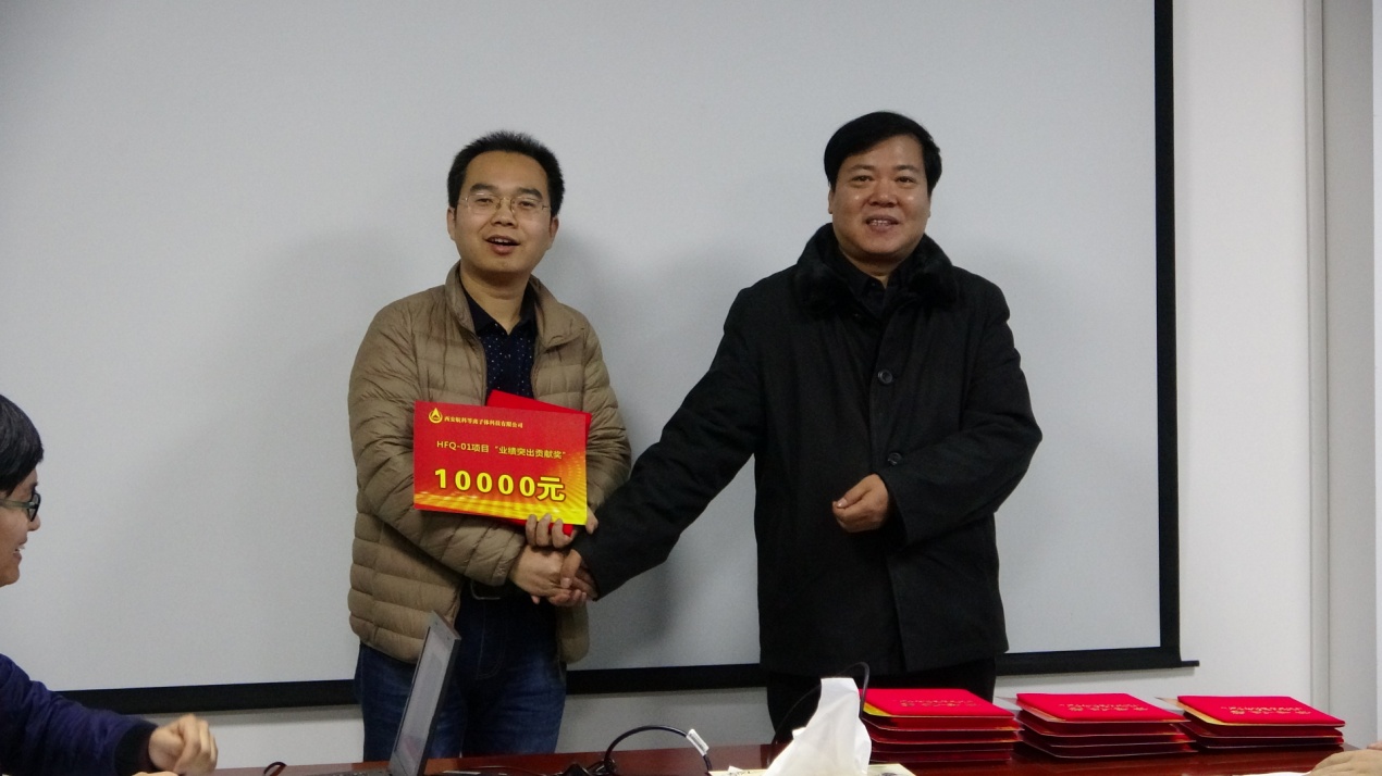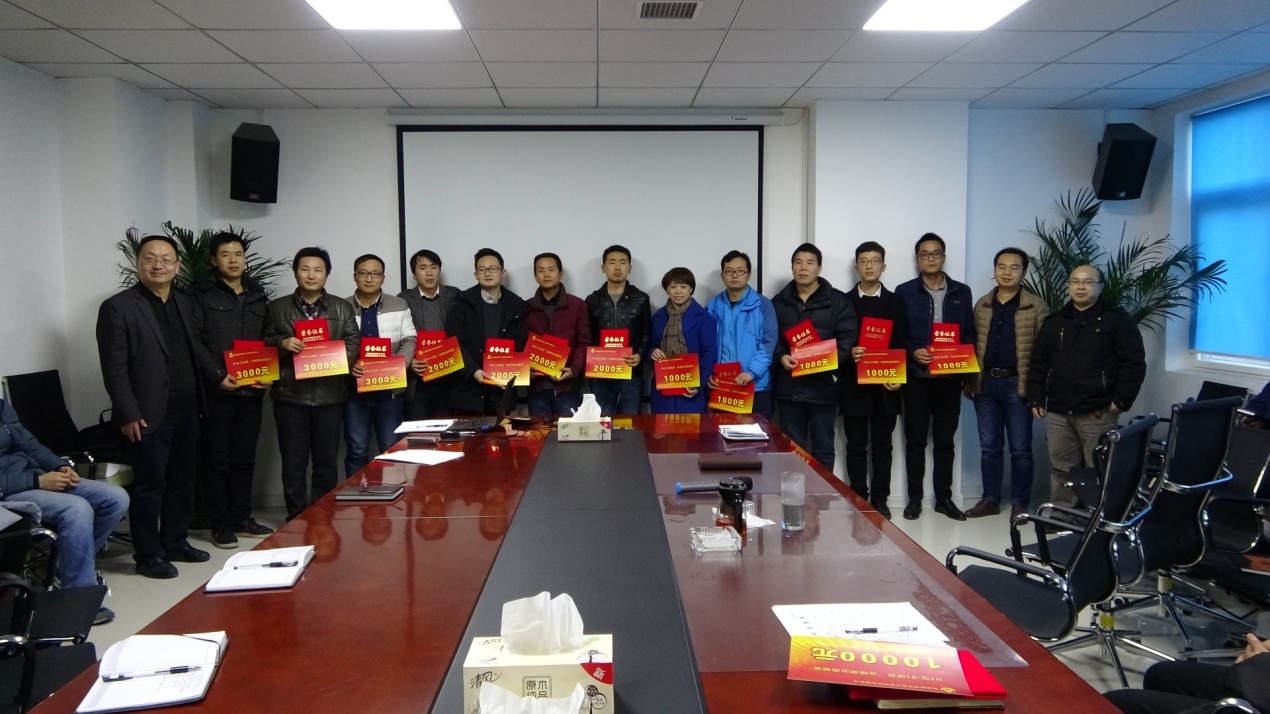 緊接著(zhù)公司總經(jīng)理靳有林、副總經(jīng)理陳紅明、總工程師馬俊分別為項目組其他受到表彰的成員頒發(fā)榮譽(yù)證書(shū)及獎金,并合影留念。